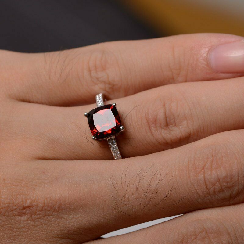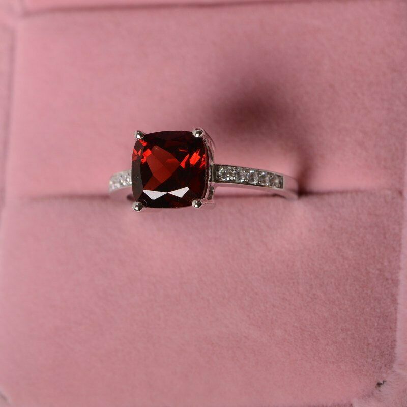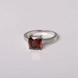 1.2ct Cushion Cut Red Garnet Engagement Ring 14k White Gold Finish Solitaire