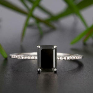 1.2ct Emerald Black Diamond Engagement Ring 14k White Gold Over Accent Solitaire