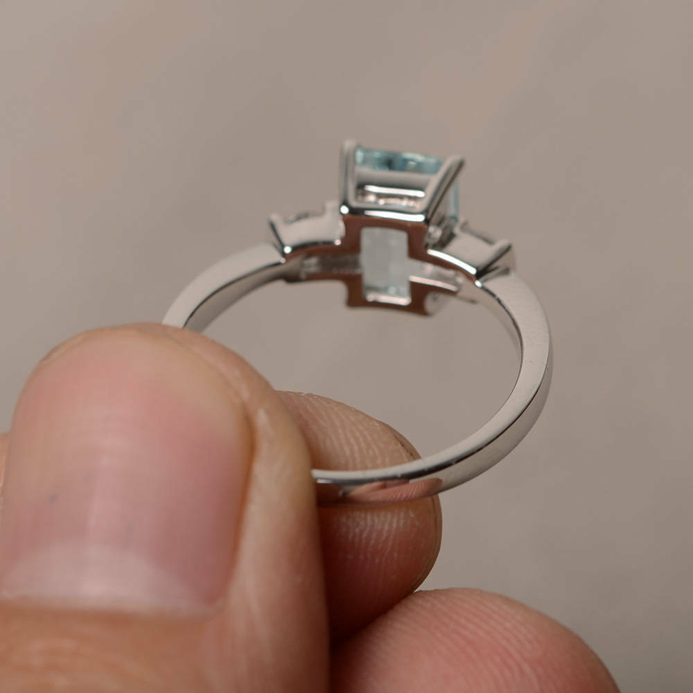 1.2ct Emerald Cut Blue Aquamarine Engagement Ring 14k White Gold Finish Trilogy