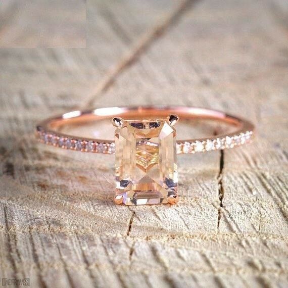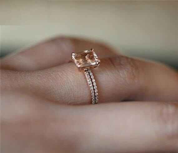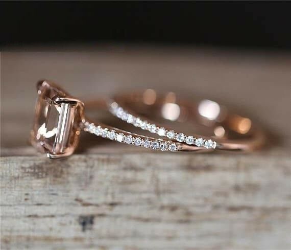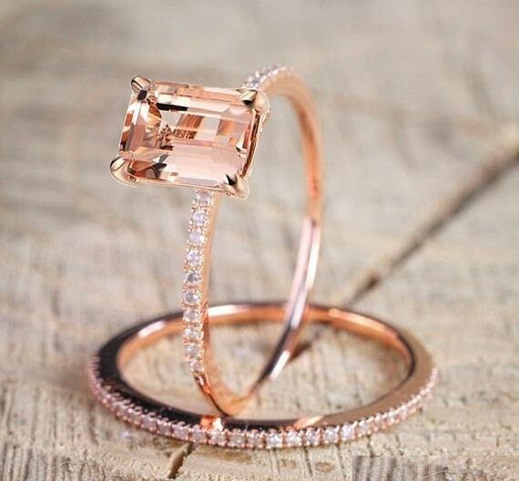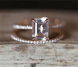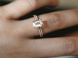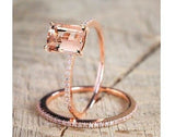 1.2ct Emerald Cut Peach Morganite Bridal Wedding Set Ring 14k White Gold Finish