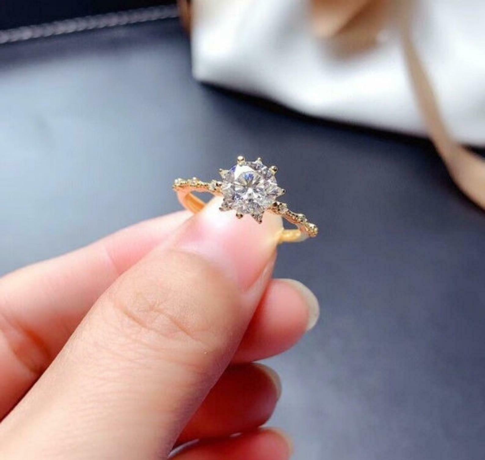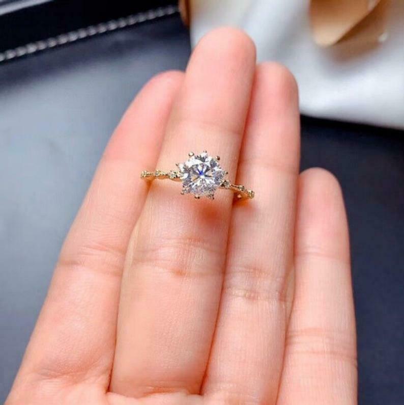 1.2ct Engagement Ring Round Cut Diamond Minimalist Design 14k Yellow Gold Finish