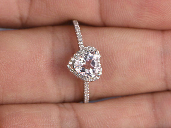 1.2ct Heart Cut Diamond Engagement Ring 18k White Gold Finish Halo Heart Shape