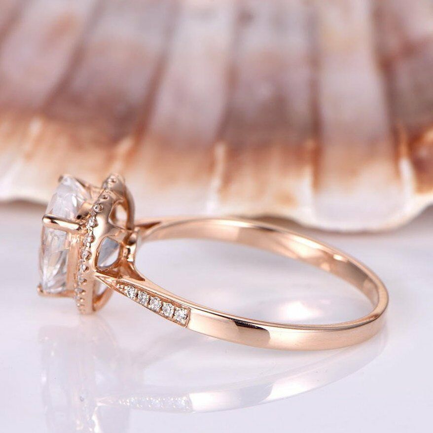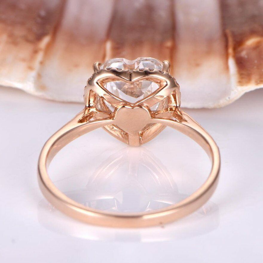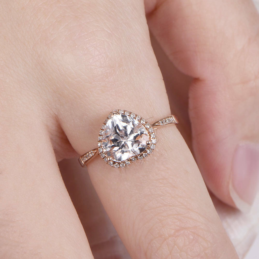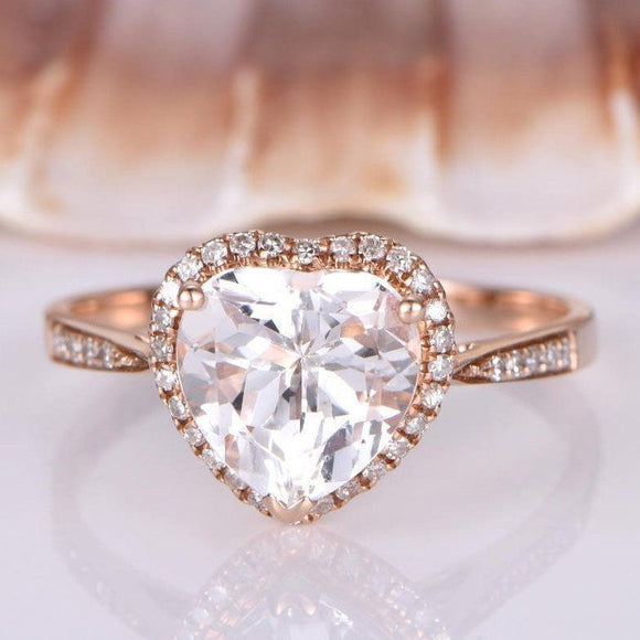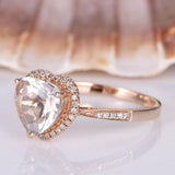 1.2ct Heart Cut Peach Morganite Halo Promise Engagement Ring 14k RoseGold Finish
