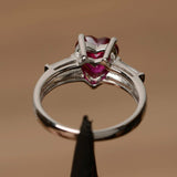 1.2ct Heart Cut Pink Ruby Three Stone Engagement Ring 14k White Gold Finish
