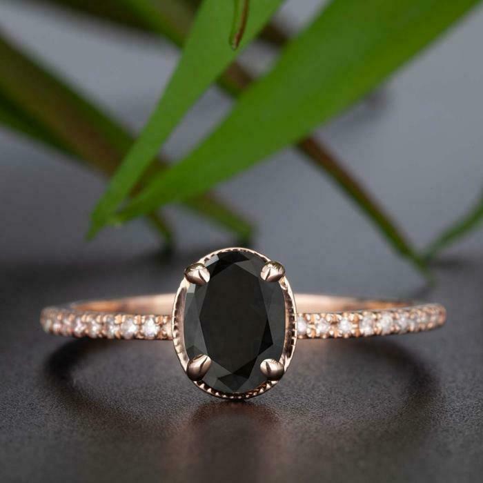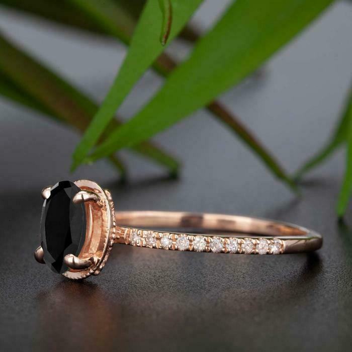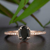1.2ct Oval Black Diamond Engagement Ring 14k Rose Gold Finish Accents Solitaire
