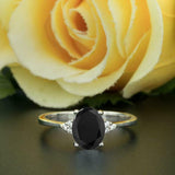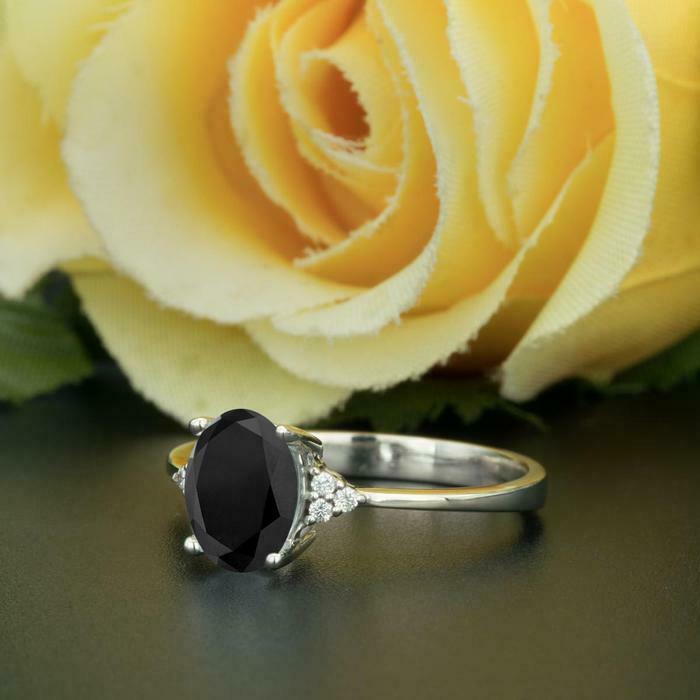 1.2ct Oval Cut Black Diamond Engagement Ring 14k White Gold Finish Solitaire