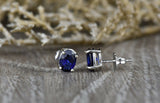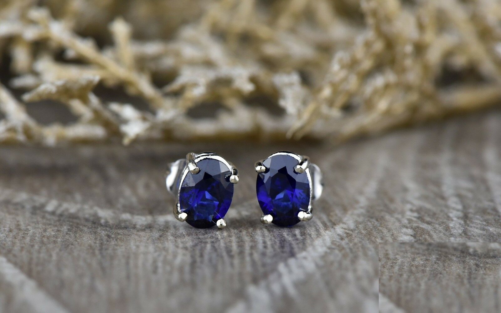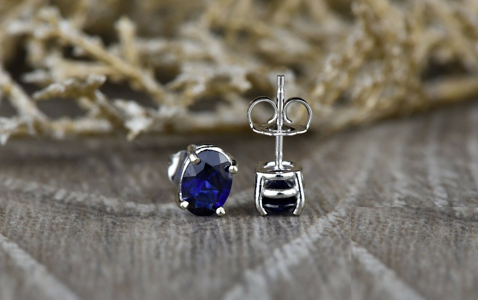 1.2ct Oval Cut Blue Sapphire PushBack Bridal Stud Earrings 14k White Gold Finish