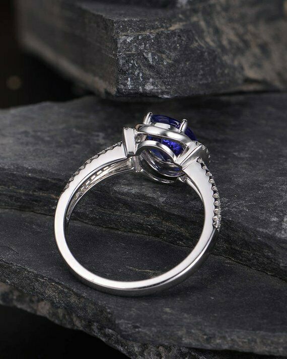 1.2ct Oval Cut Blue Tanzanite Engagement Ring 14k White Gold Finish Split Shank