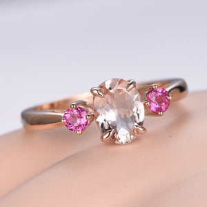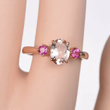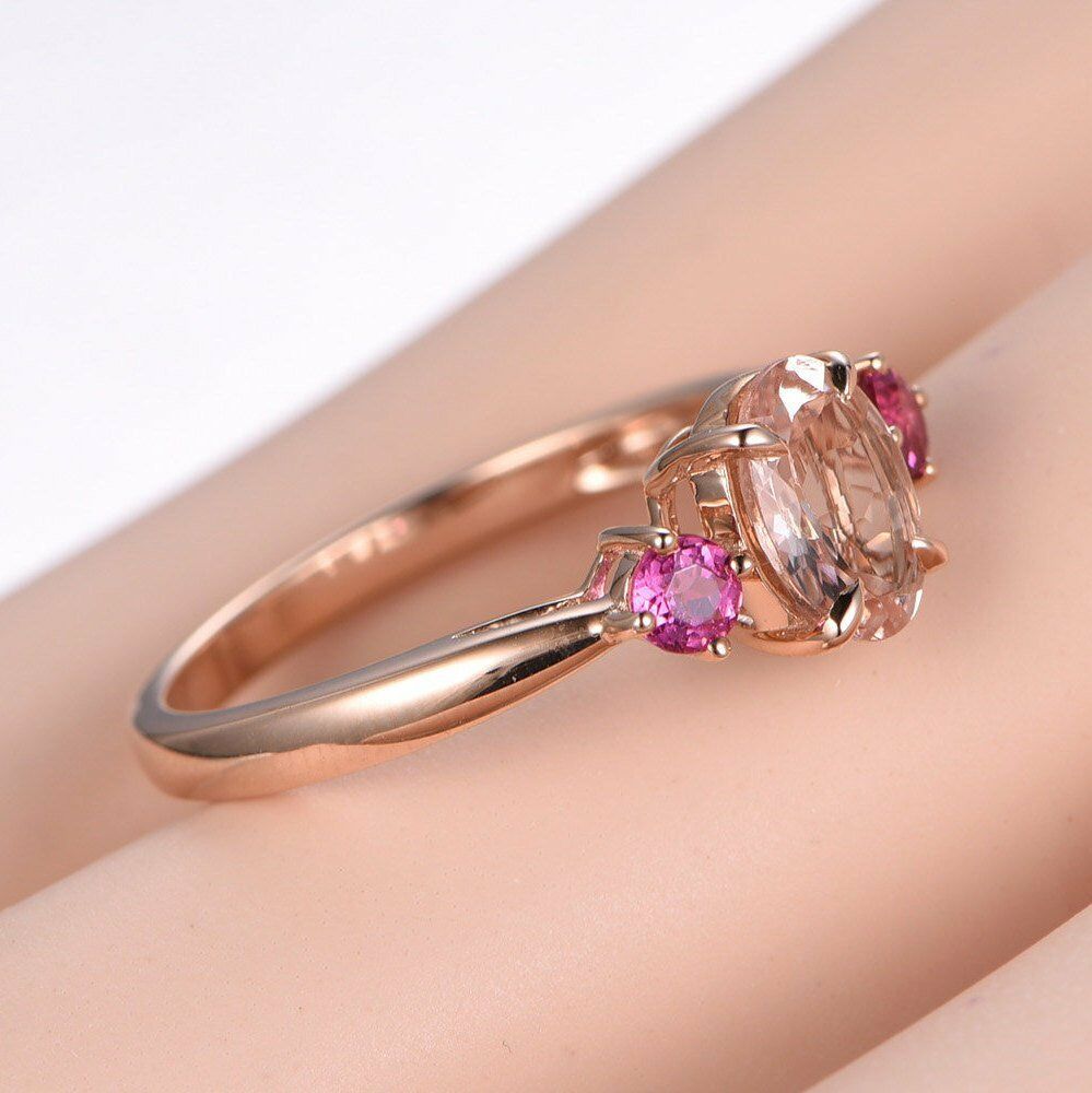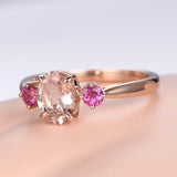 1.2ct Oval Cut Peach Morganite Three Stone Engagement Ring 14k Rose Gold Finish