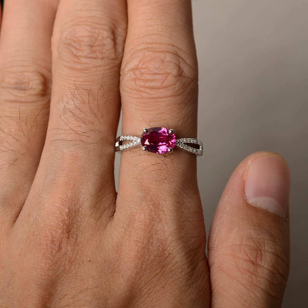 1.2ct Oval Cut Pink Ruby Engagement Ring 14k White Gold Finish Split Shank Women