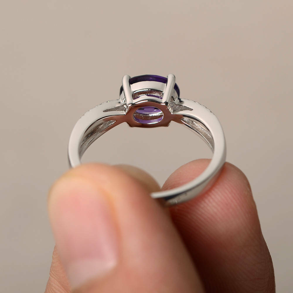 1.2ct Oval Cut Purple Amethyst Engagement Ring 14k White Gold Finish Split Shank