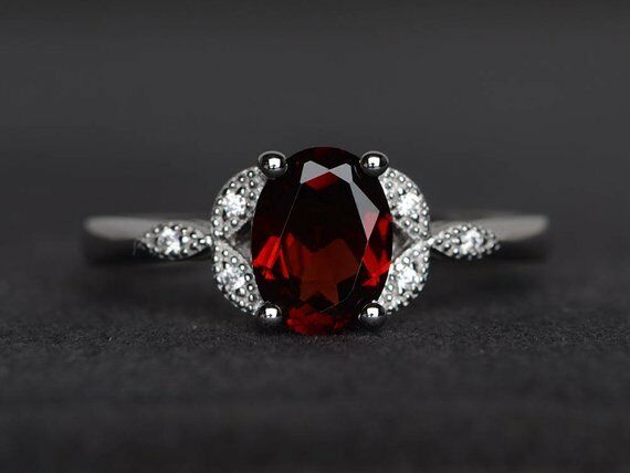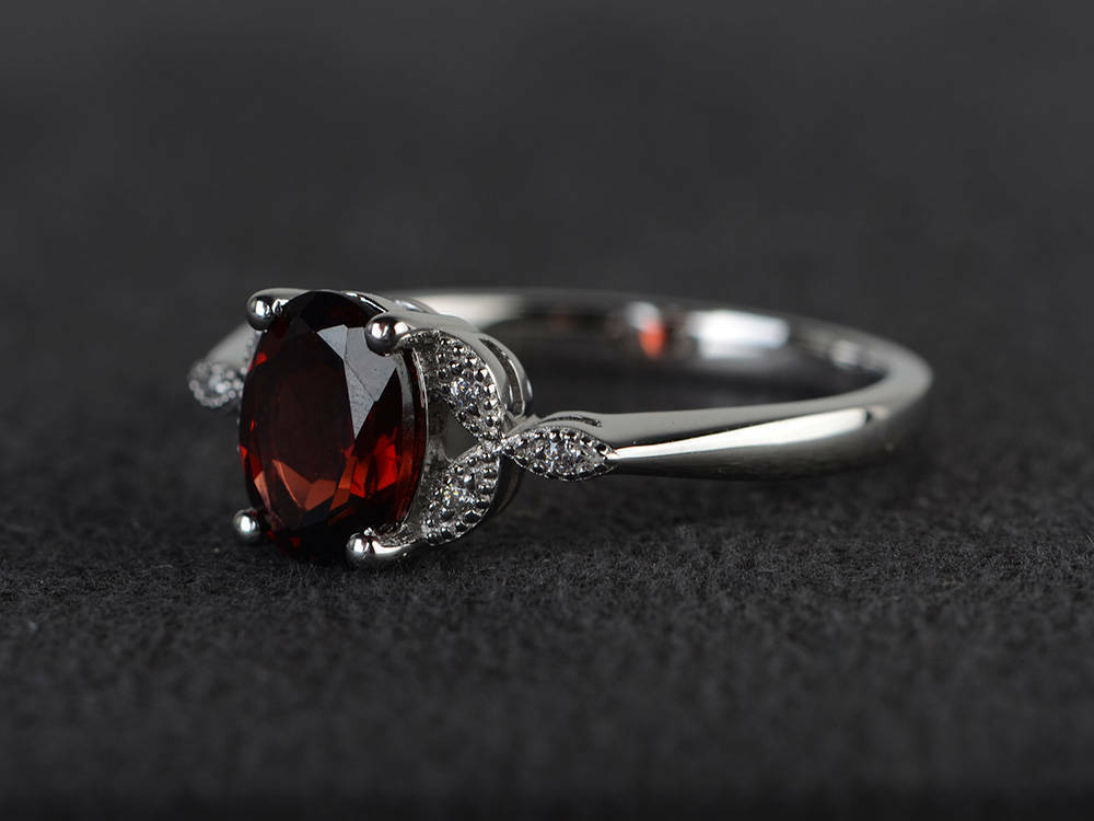 1.2ct Oval Cut Red Garnet Engagement Ring 14k White Gold Finish Accent Solitaire