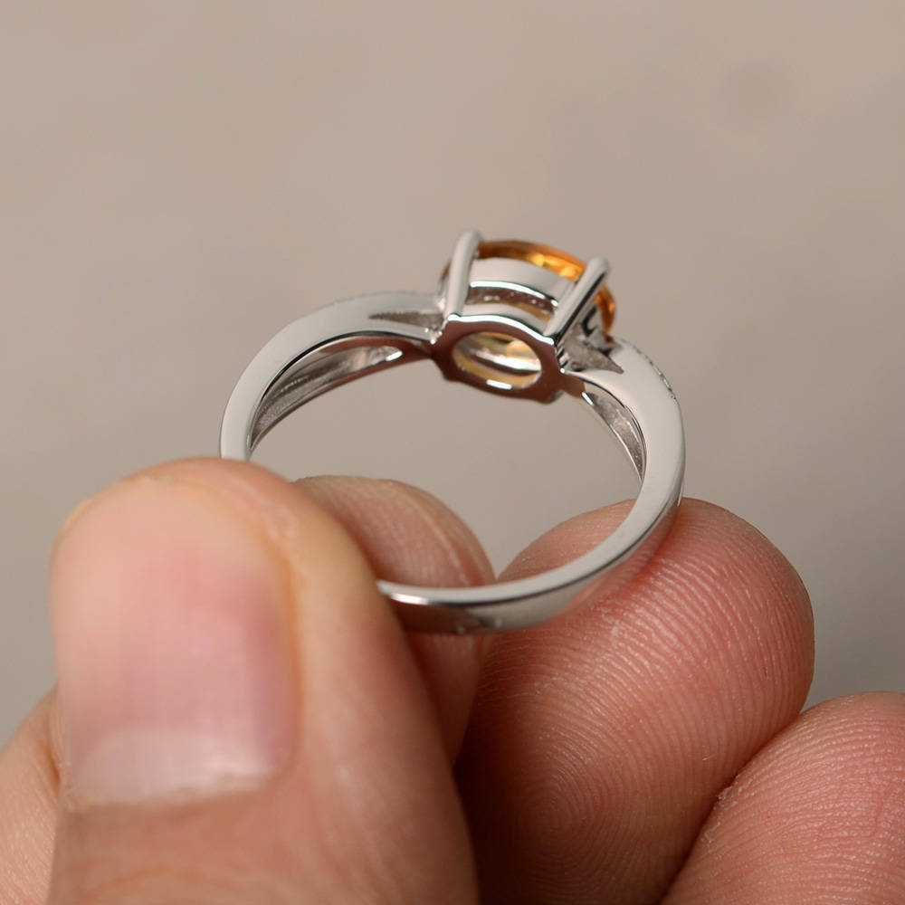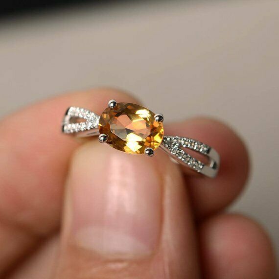 1.2ct Oval Cut Yellow Citrine Engagement Ring 14k White Gold Finish Split Shank