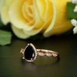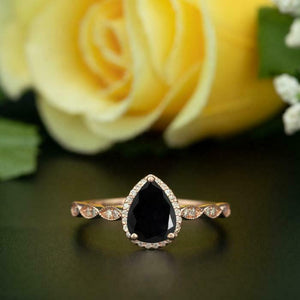 1.2ct Pear Black Diamond Engagement Ring 14k RoseGold Over Halo Accent Solitaire