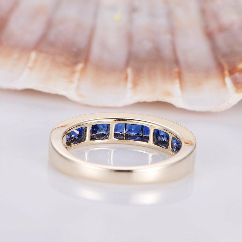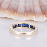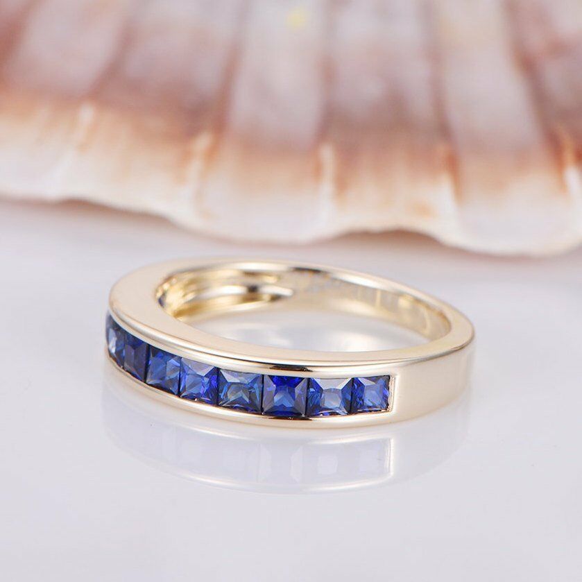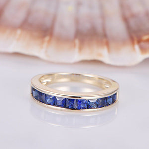 1.2ct Princess Blue Sapphire Eternity Wedding Band Ring 14k Yellow Gold Finish