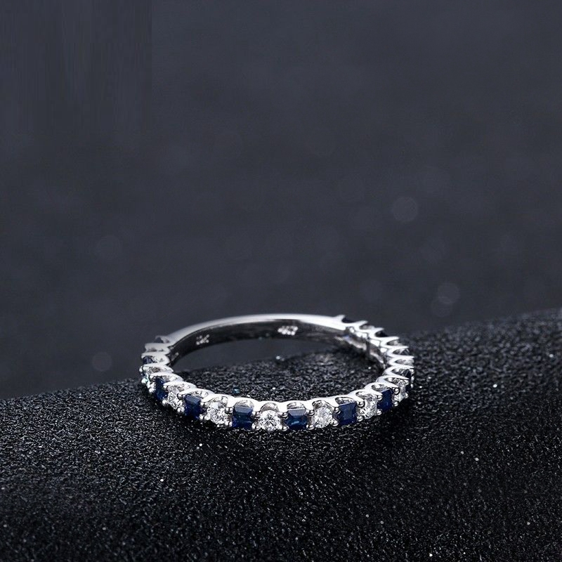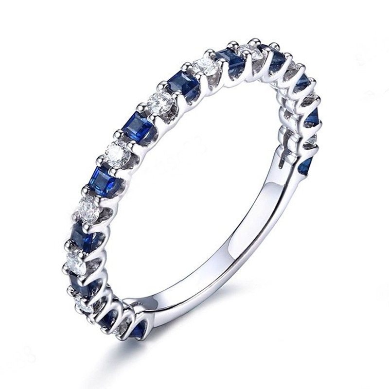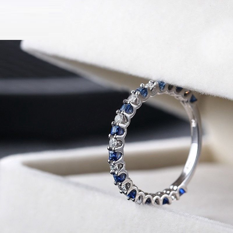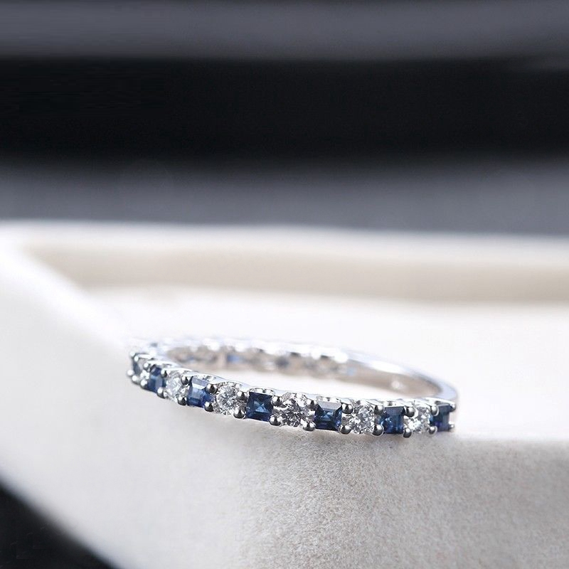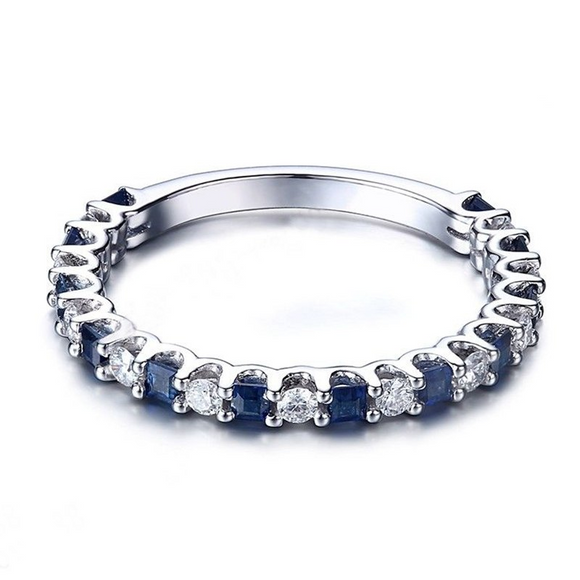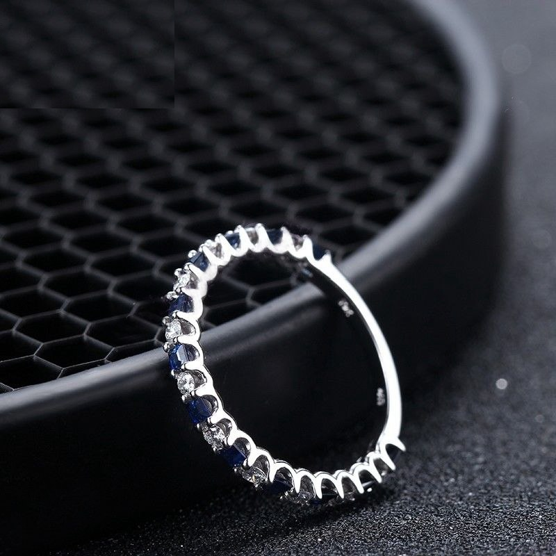 1.2ct Princess Cut Blue Sapphire Eternity Wedding Band Ring 14k WhiteGold Finish