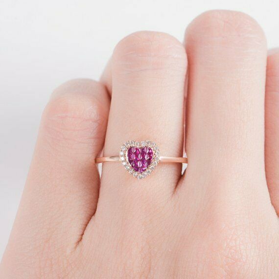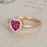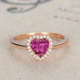 1.2ct Princess Cut Pink Ruby Engagement Ring 14k Rose Gold Over Halo Heart Shape