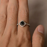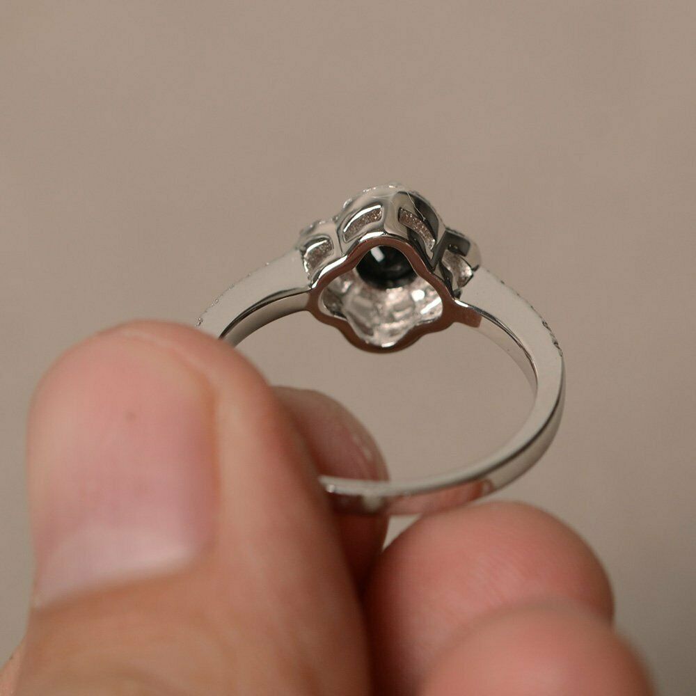 1.2ct Round Black Diamond Engagement Ring 14k White Gold Finish Halo Solitaire
