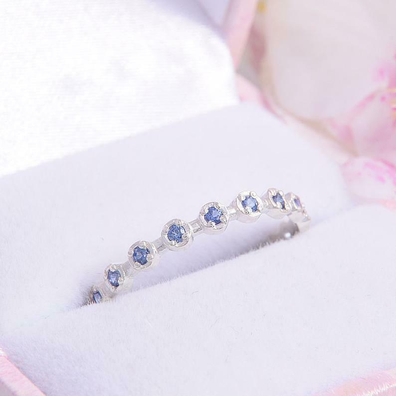 1.2ct Round Cut BlueTanzanite Half Eternity Wedding Band 14k White Gold Finish