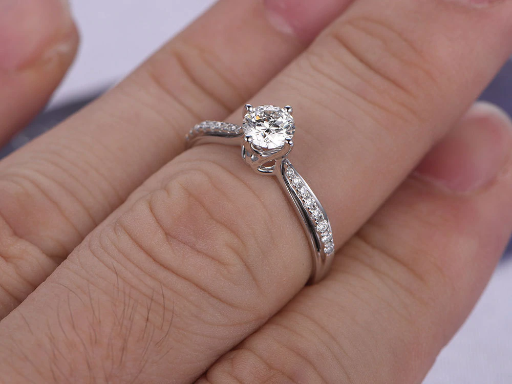 1.2ct Round Cut Diamond Engagement Ring 14k White Gold Finish Solitaire Wedding