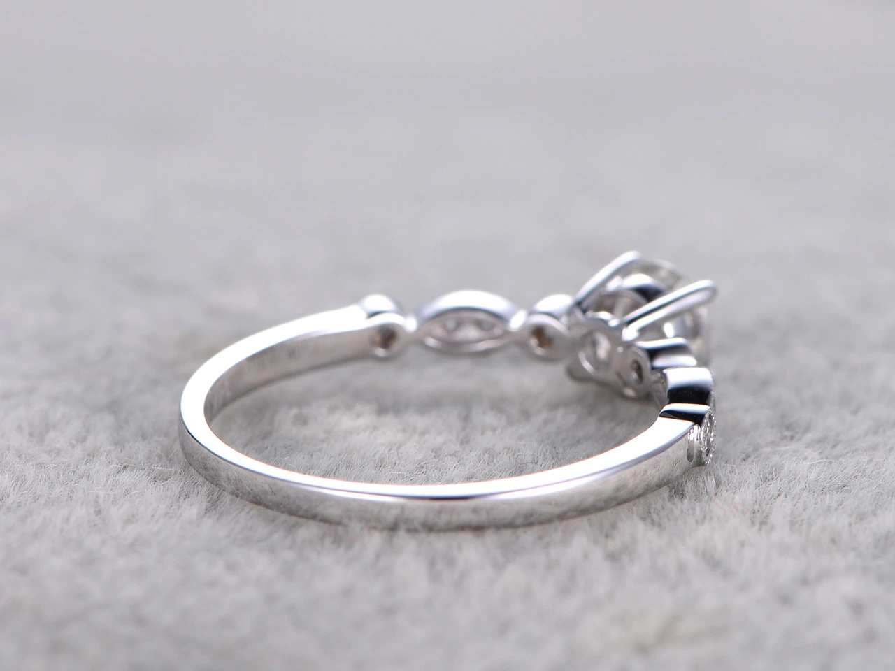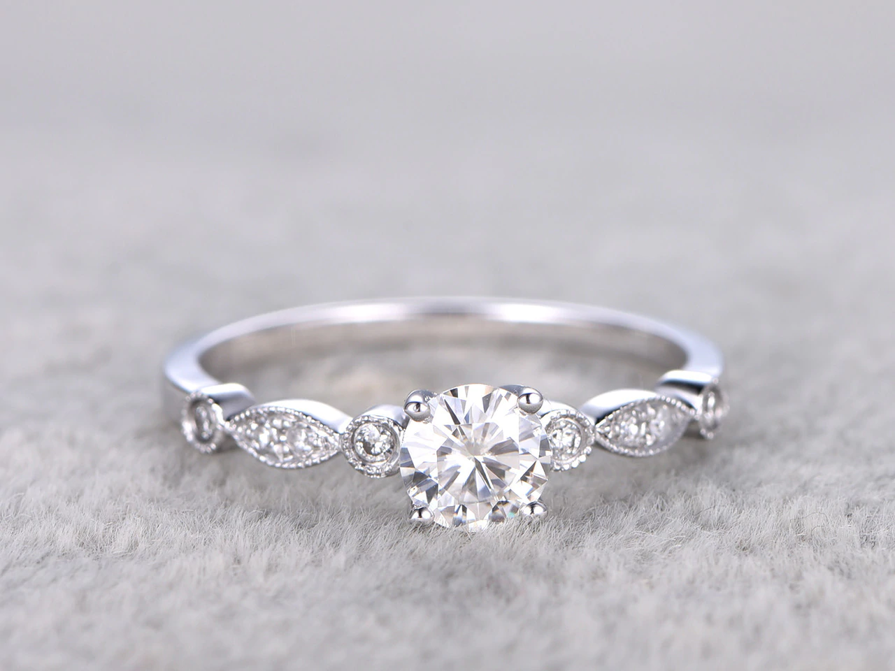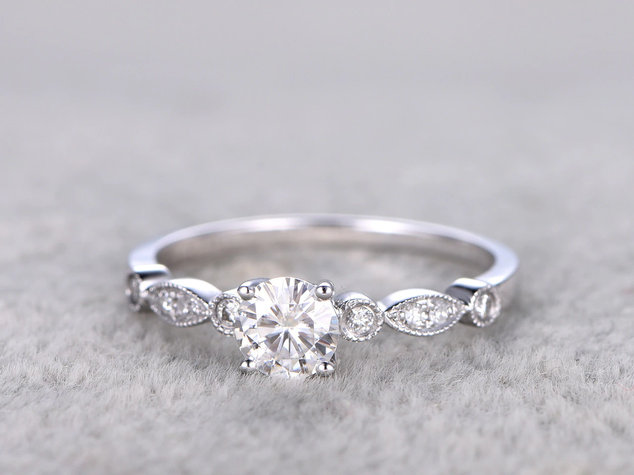 1.2ct Round Cut Diamond Engagement Ring 14k White Gold Finish Vintage Milgrain