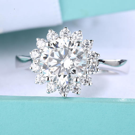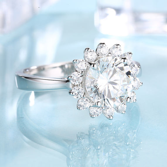 1.2ct Round Cut Diamond Engagement Ring 14k WhiteGold Finish Cluster Halo Floral