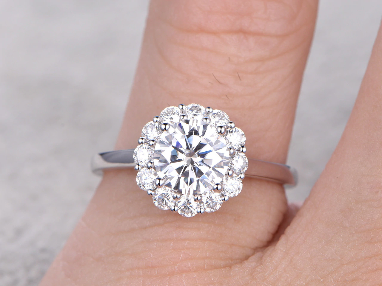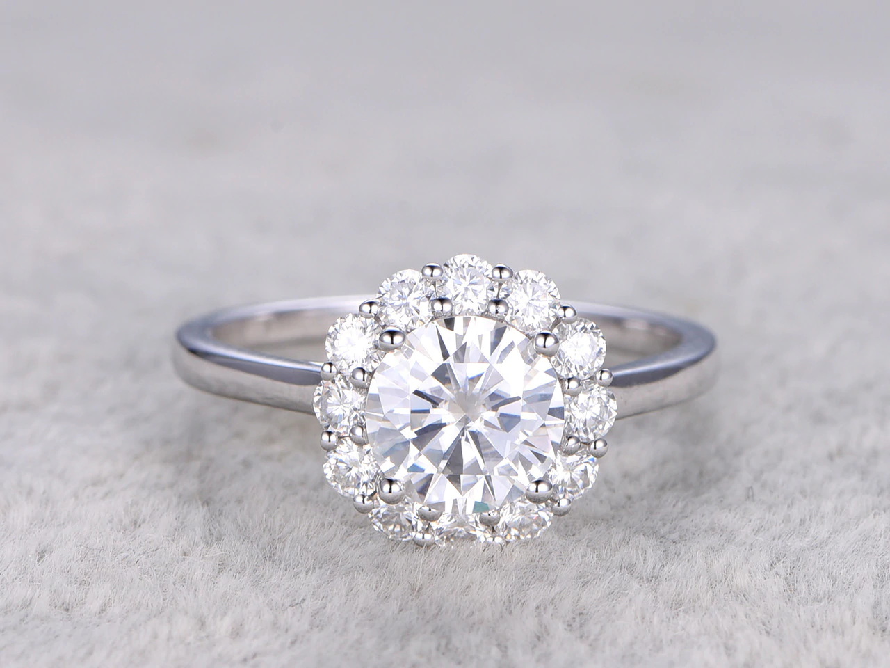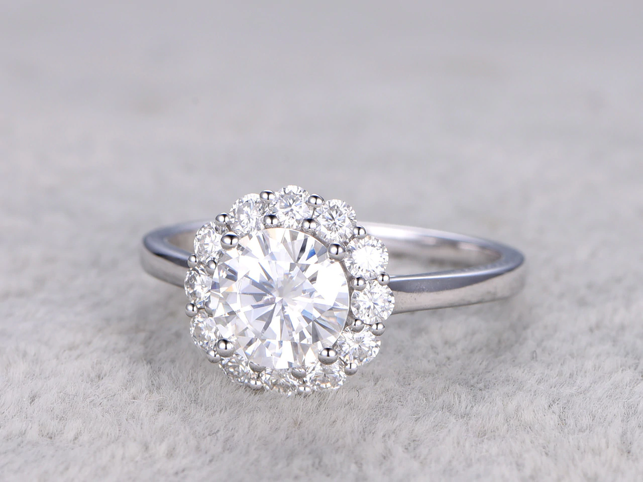 1.2ct Round Cut Diamond Engagement Ring 14k WhiteGold Finish Halo Floral Promise