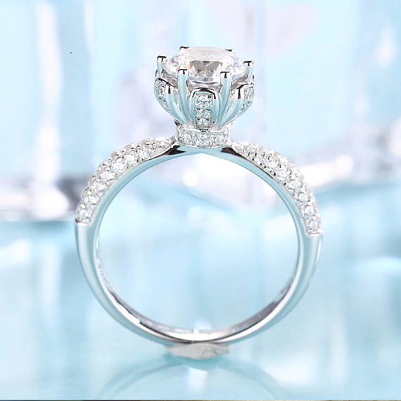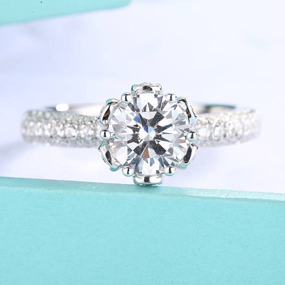 1.2ct Round Cut Diamond Engagement Ring 14k WhiteGold Over Antique Unique Floral