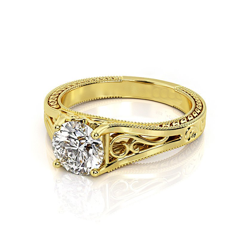 1.2ct Round Cut Diamond Engagement Ring 14k Yellow Gold Finish Antique Filigree