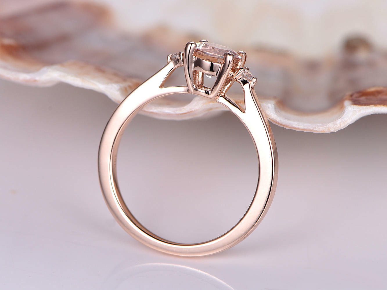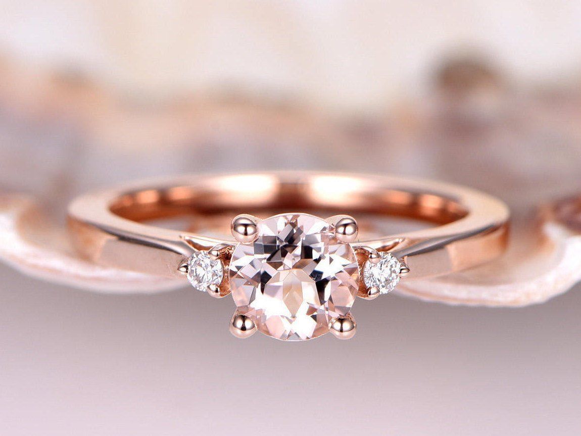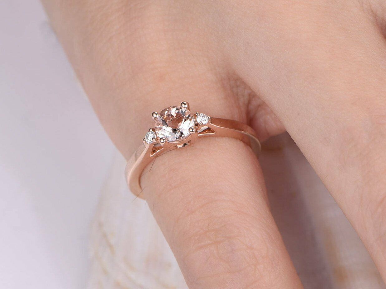 1.2ct Round Cut Peach Morganite Solitaire Engagement Ring 14k Rose Gold Finish