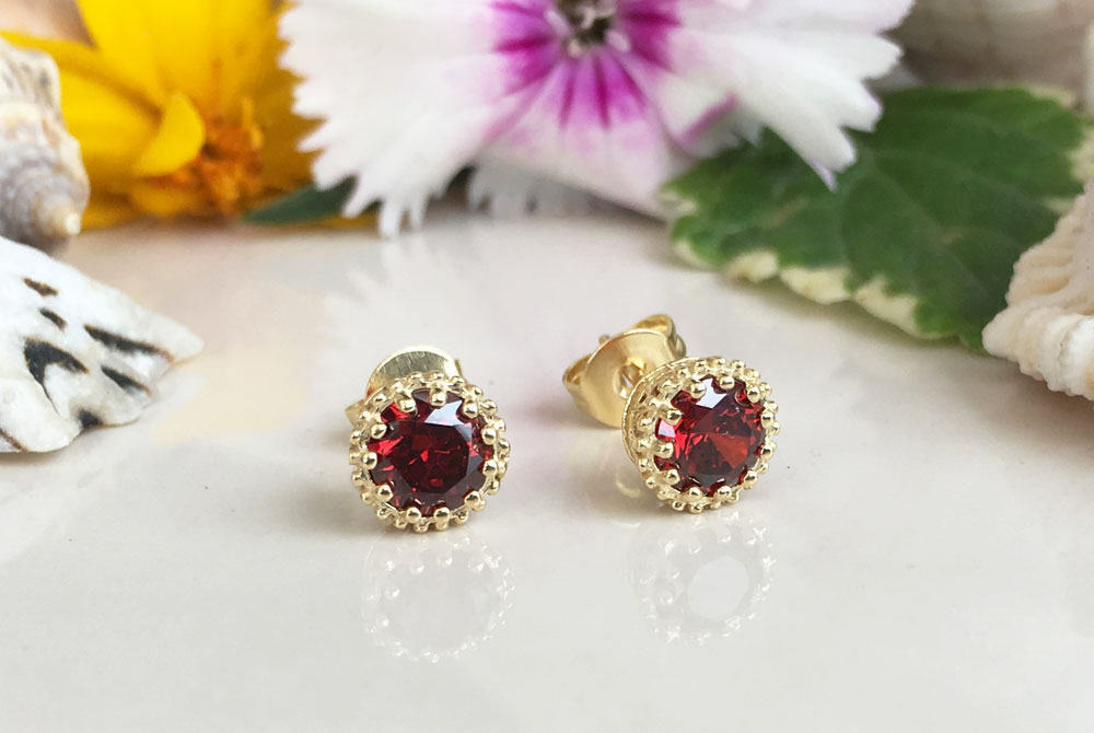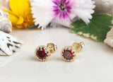 1.2ct Round Cut Red Garnet Crown Solitaire Stud Earrings 14k Yellow Gold Finish