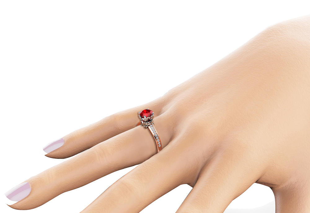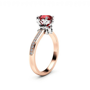 1.2ct Round Cut Red Garnet Engagement Ring 14k Dual Tone Finish Accent Solitaire
