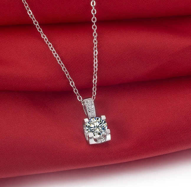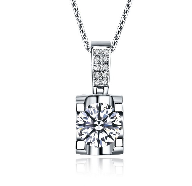 1.2ct Round Cut VVS1 Diamond Pendant Chain Accent Solitaire 14k WhiteGold Finish