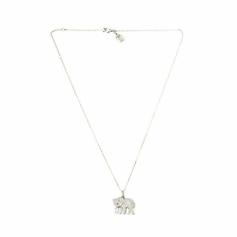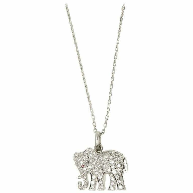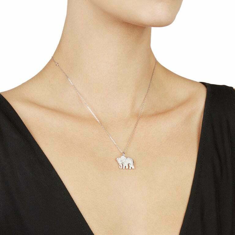 1.2ct Round Cut VVS1D Diamond Elephant Pendant with Chain 14k White Gold Finish