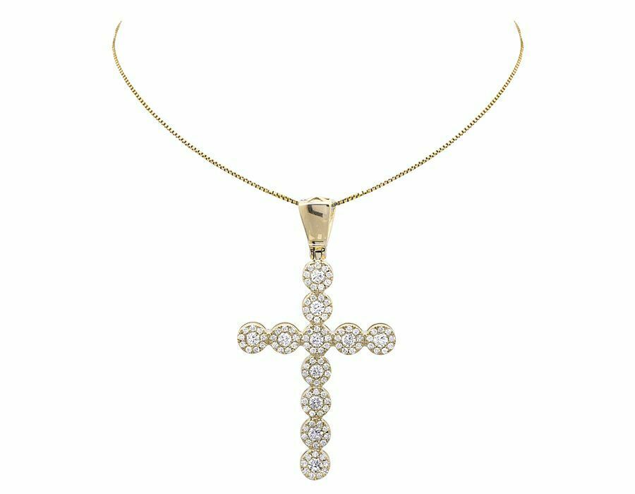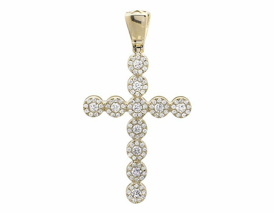 1.2ct Round Cut VVS1D Diamond Pendant Halo Cluster Cross 14k Yellow Gold Finish