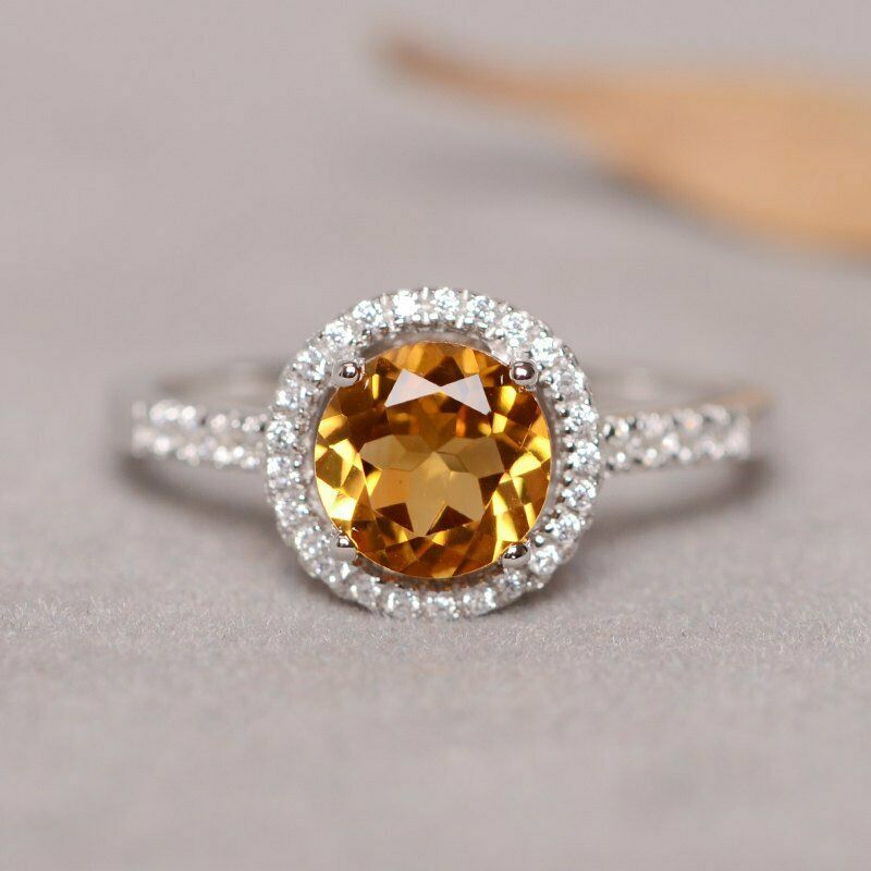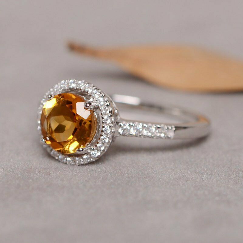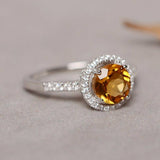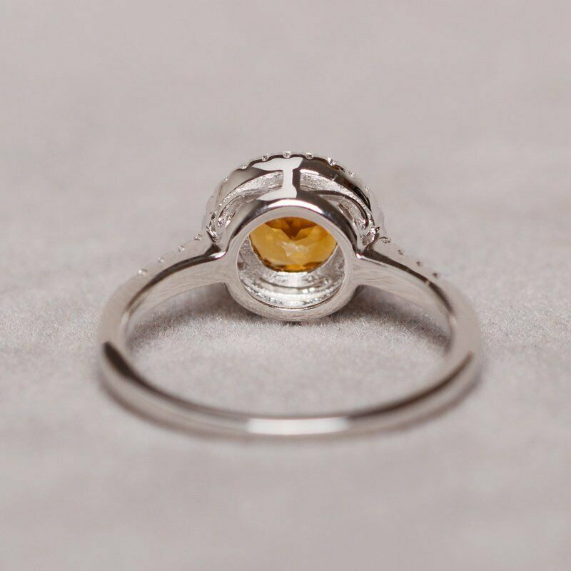 1.2ct Round Cut Yellow Citrine Engagement Ring 14k White Gold Finish Halo Women