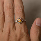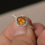 1.2ct Round Yellow Citrine Engagement Ring 14k White Gold Finish Halo Solitaire