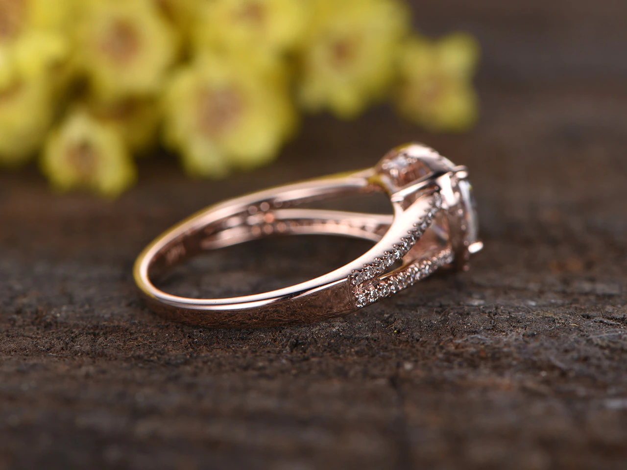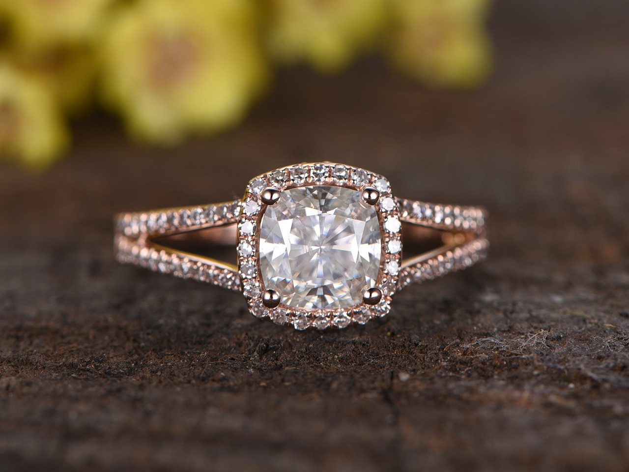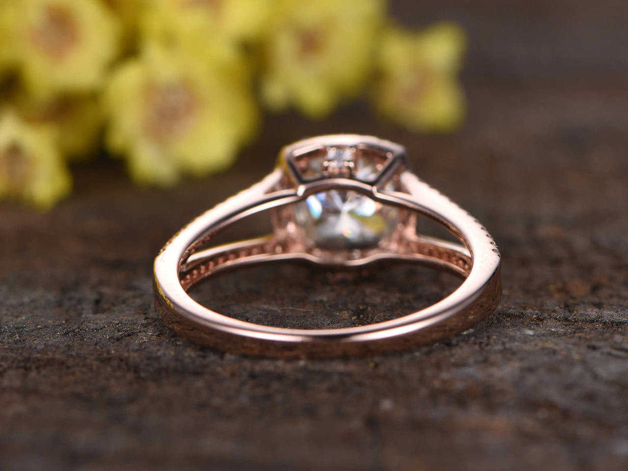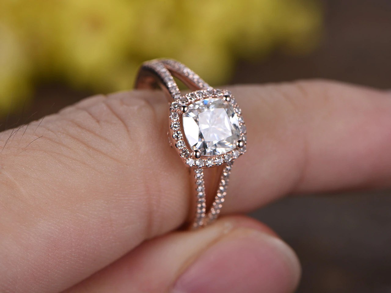 1.3ct Cushion Cut Diamond Engagement Ring 14k Rose Gold Finish Halo Split Shank