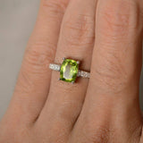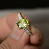 1.3ct Cushion Cut Green Peridot Engagement Ring 14k White Gold Finish Solitaire