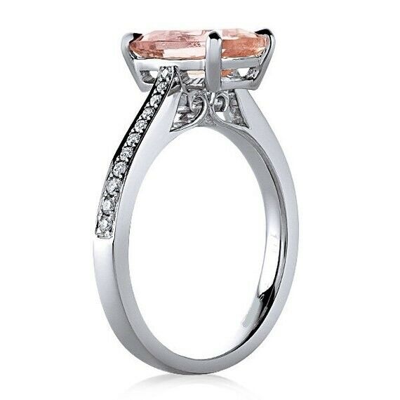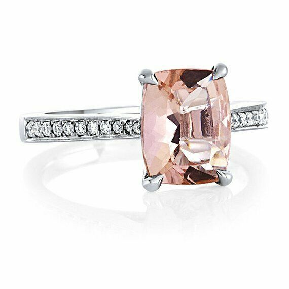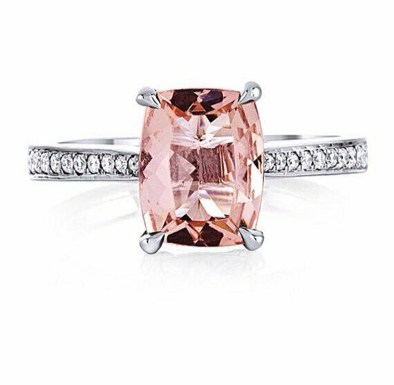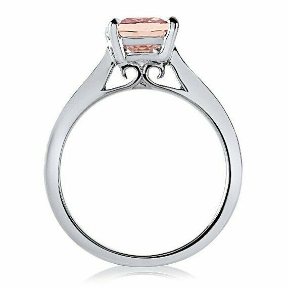 1.3ct Cushion Cut Peach Morganite Solitaire Engagement Ring 14k WhiteGold Finish