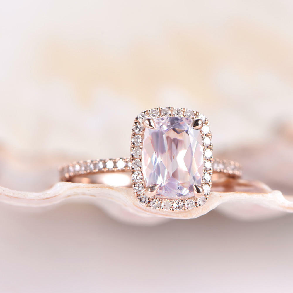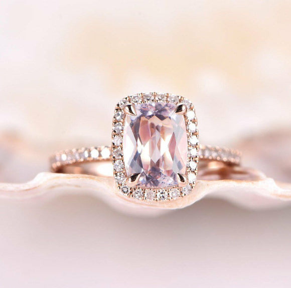 1.3ct Cushion Cut Peach Morganite Solitaire Engagement Ring 18k RoseGold Finish