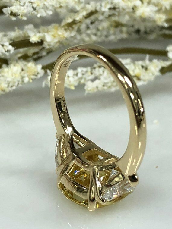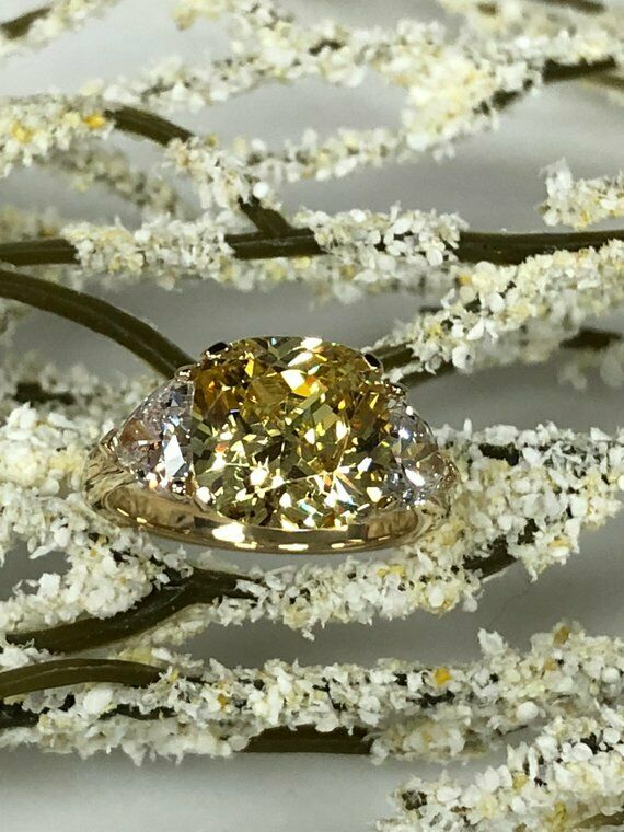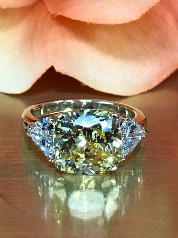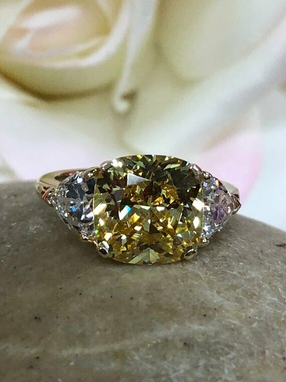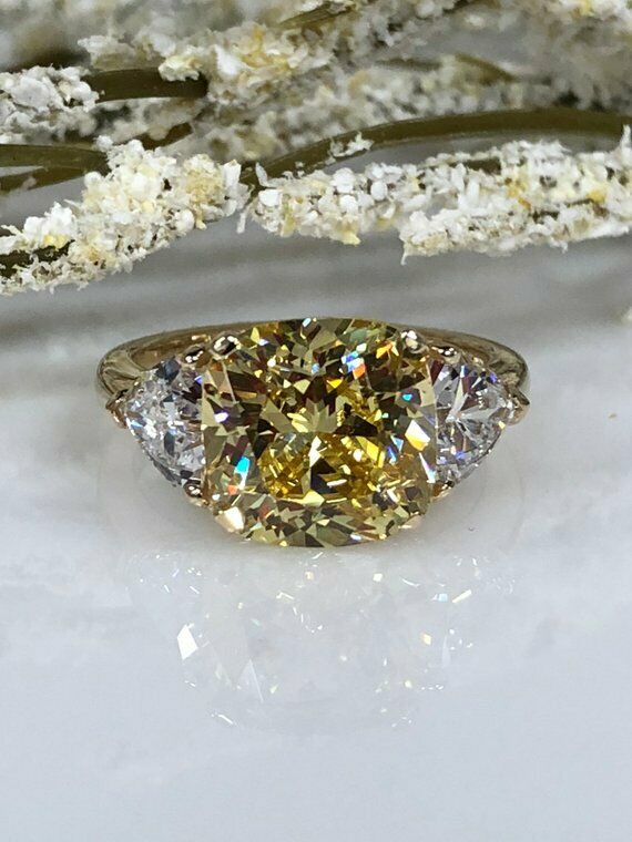 1.3ct Cushion Cut Yellow Sapphire 3 Stone Engagement Ring 14k White Gold Finish