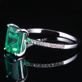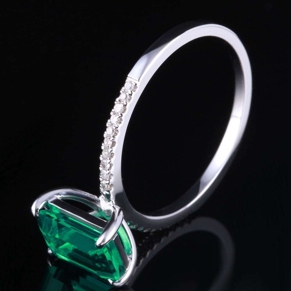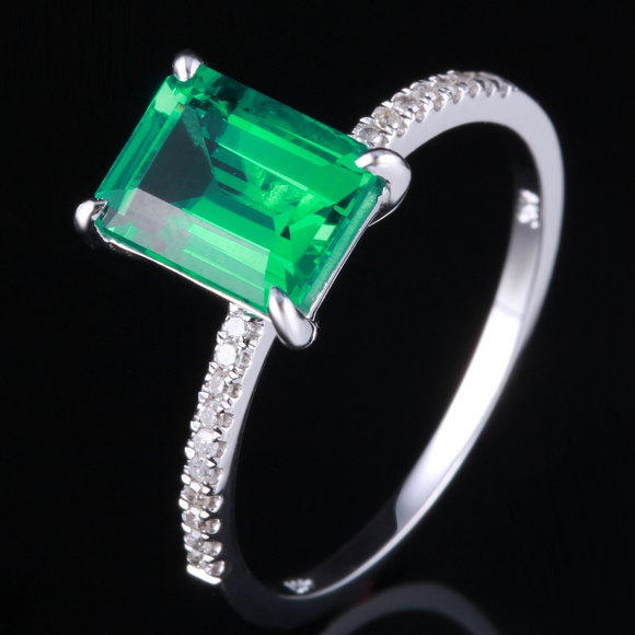 1.3ct Emerald Cut Green Emerald Solitaire Engagement Ring 14k White Gold Finish