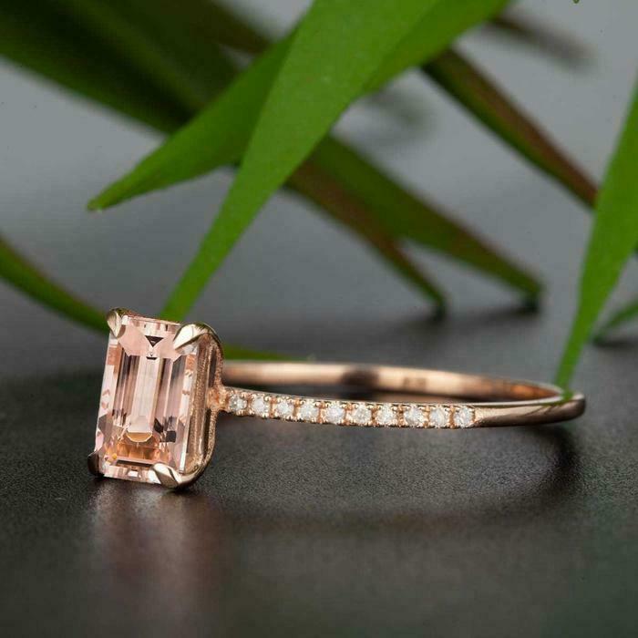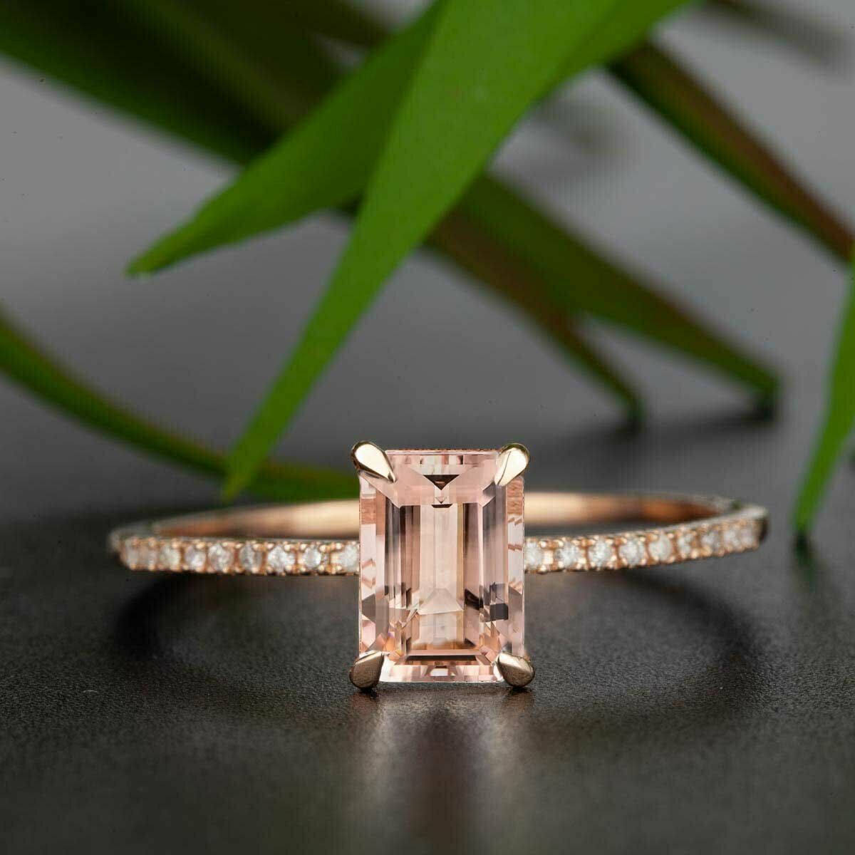 1.3ct Emerald Cut Peach Morganite Engagement Ring 18k Rose Gold Finish Solitaire