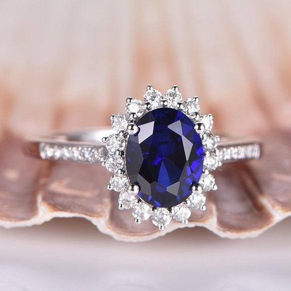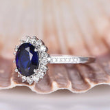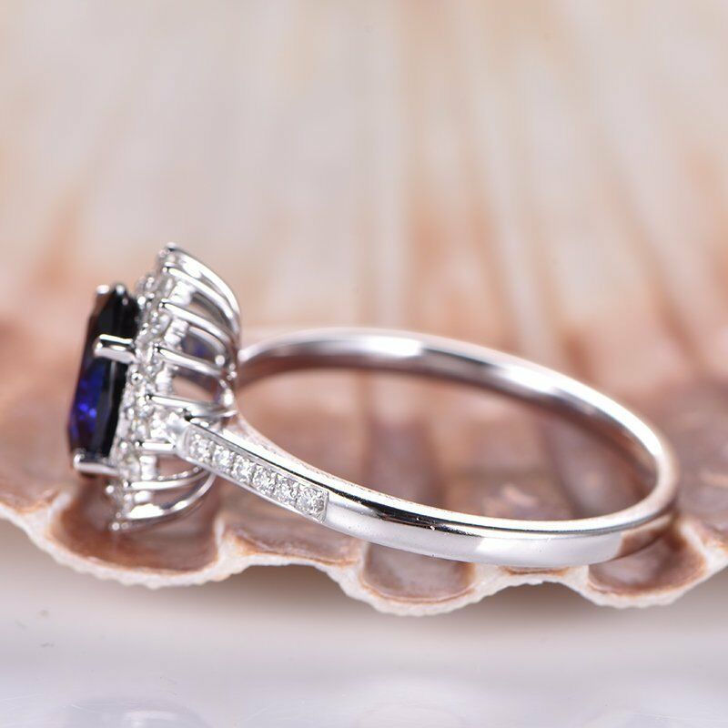 1.3ct Oval Cut Blue Sapphire Floral Promise Engagement Ring 14k WhiteGold Finish