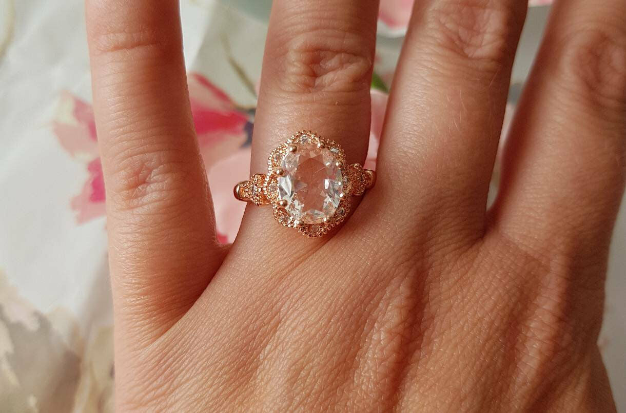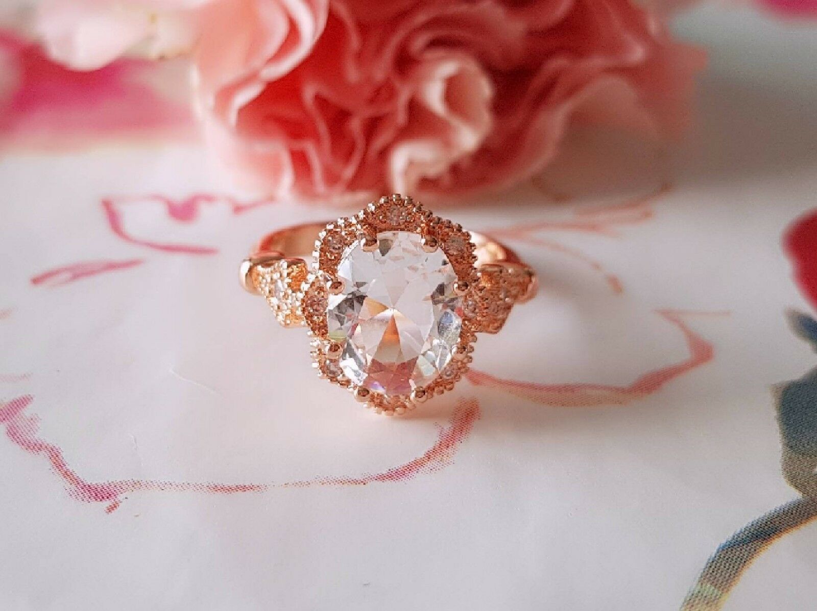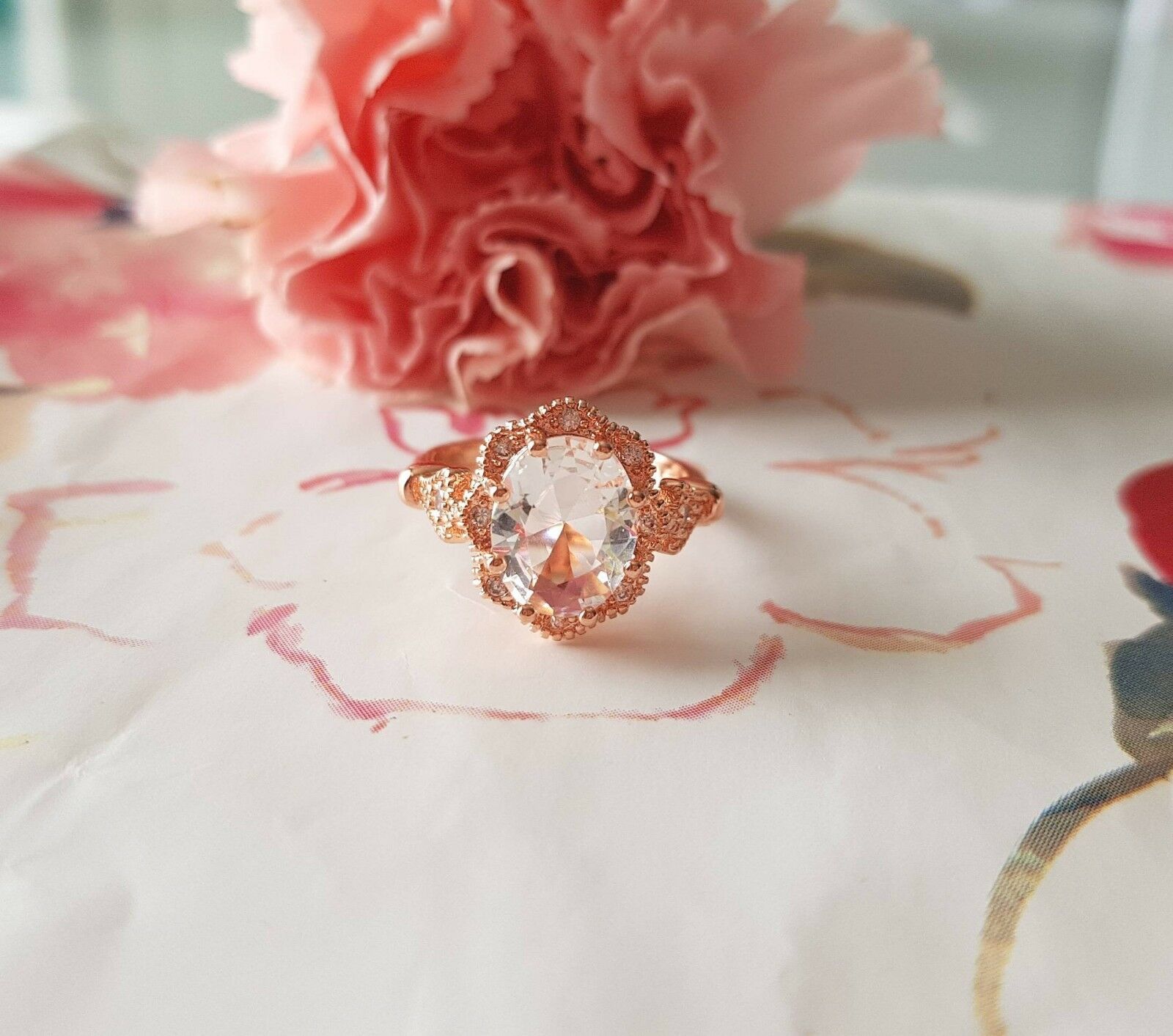1.3Ct Oval Cut Diamond Vintage Art Deco Engagement Ring 14K Rose Gold Finish