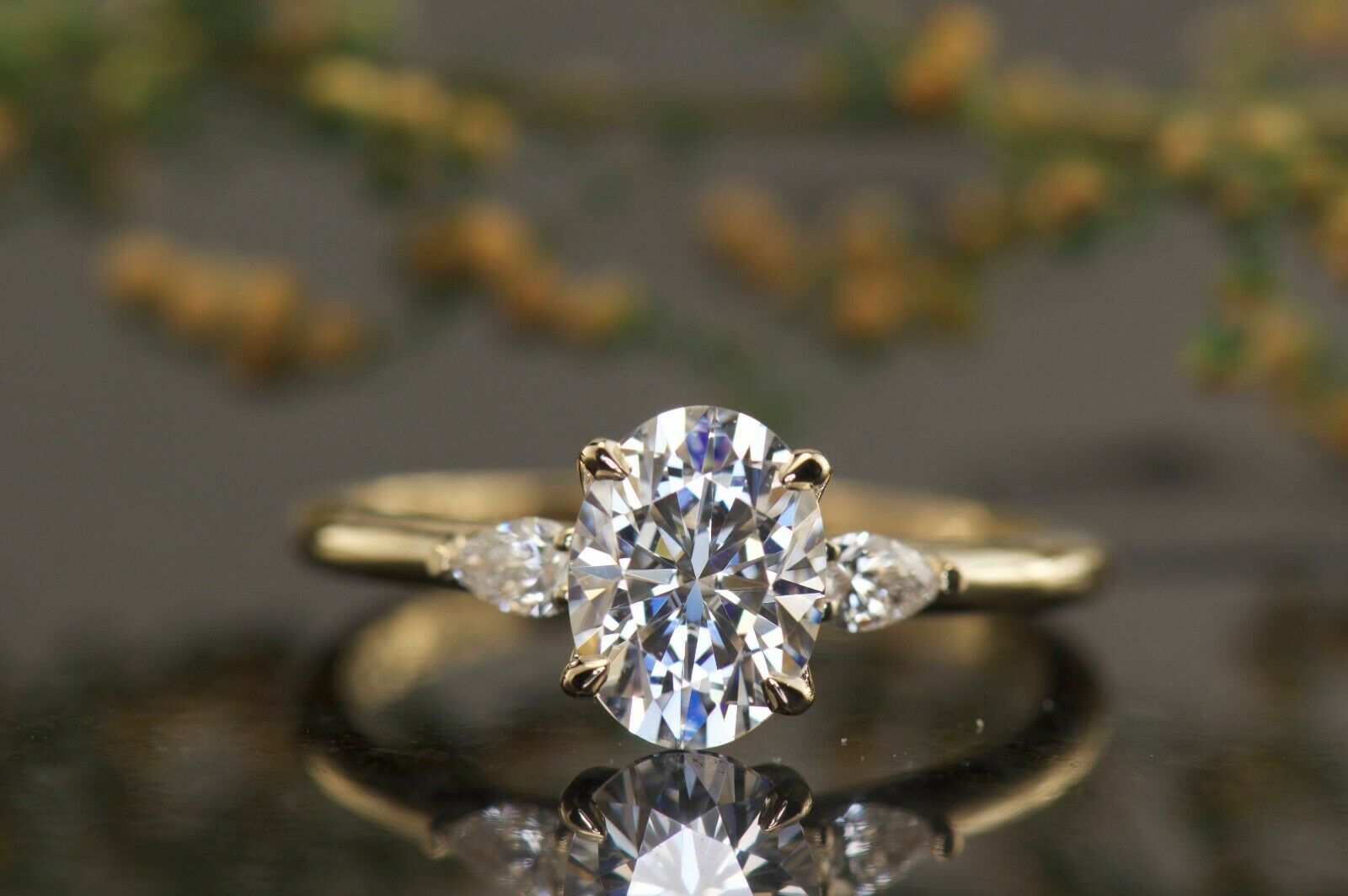 1.3Ct Oval Cut DVVS1 Diamond Pear Accents Engagement Ring 14K Yellow Gold Finish