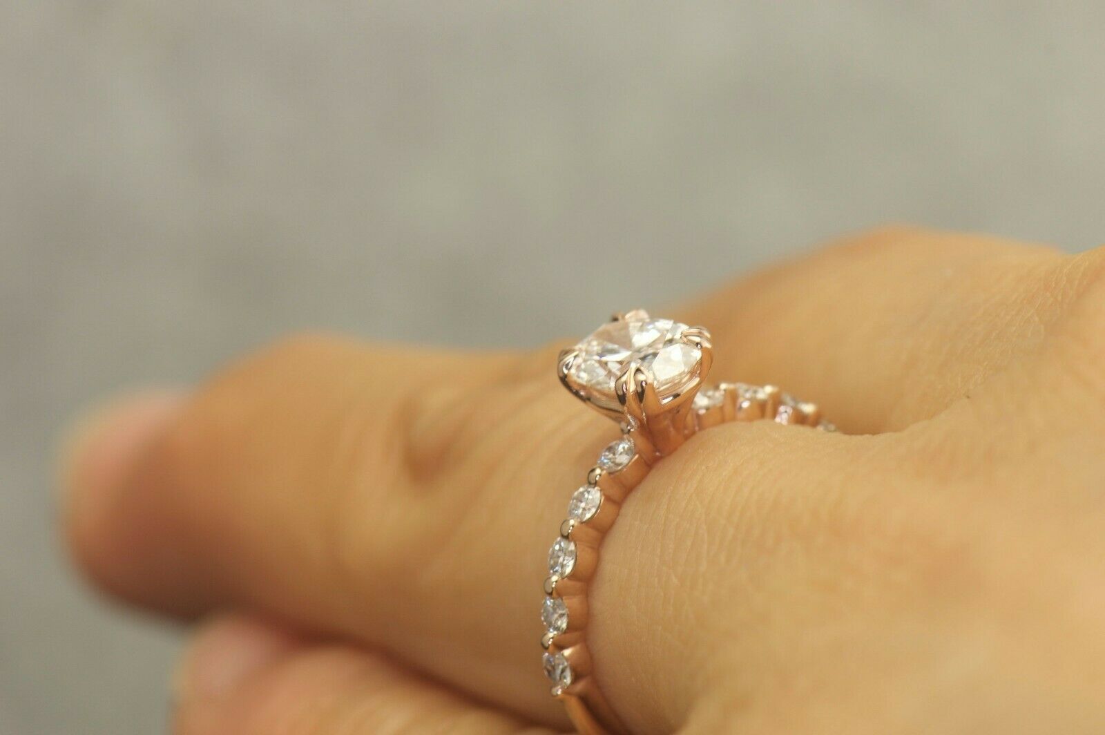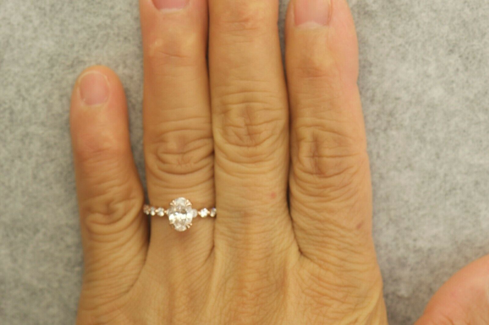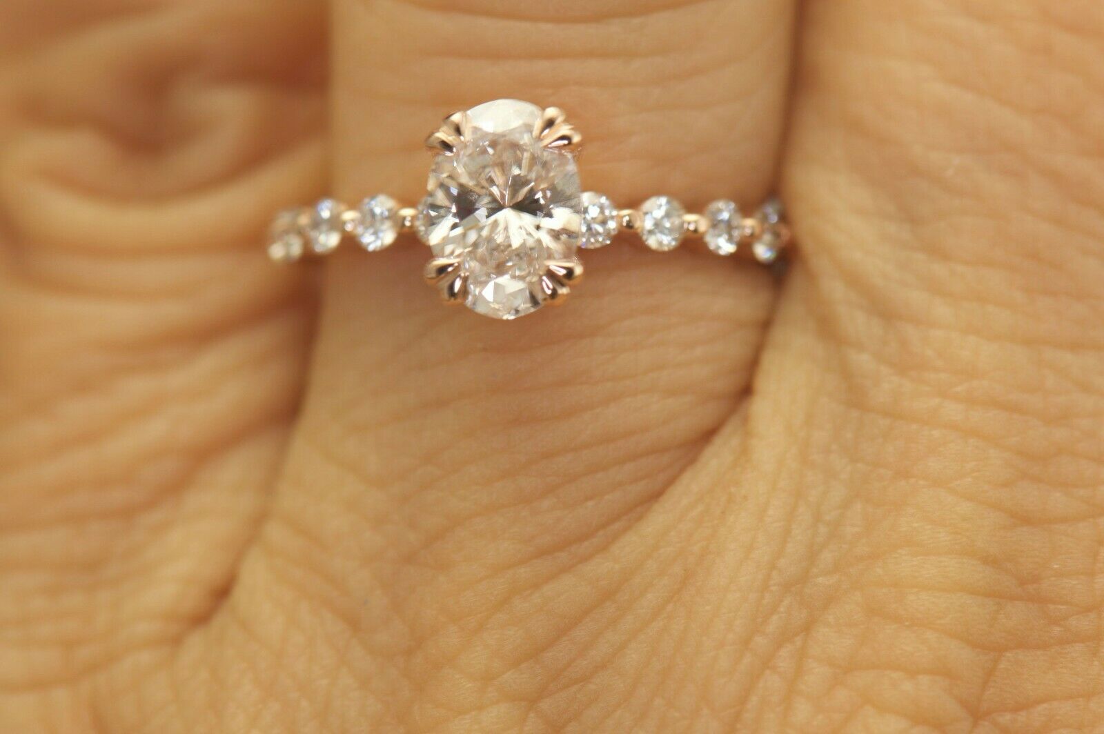 1.3Ct Oval Cut DVVS1 Diamond Round Accents Engagement Ring 14K Rose Gold Finish