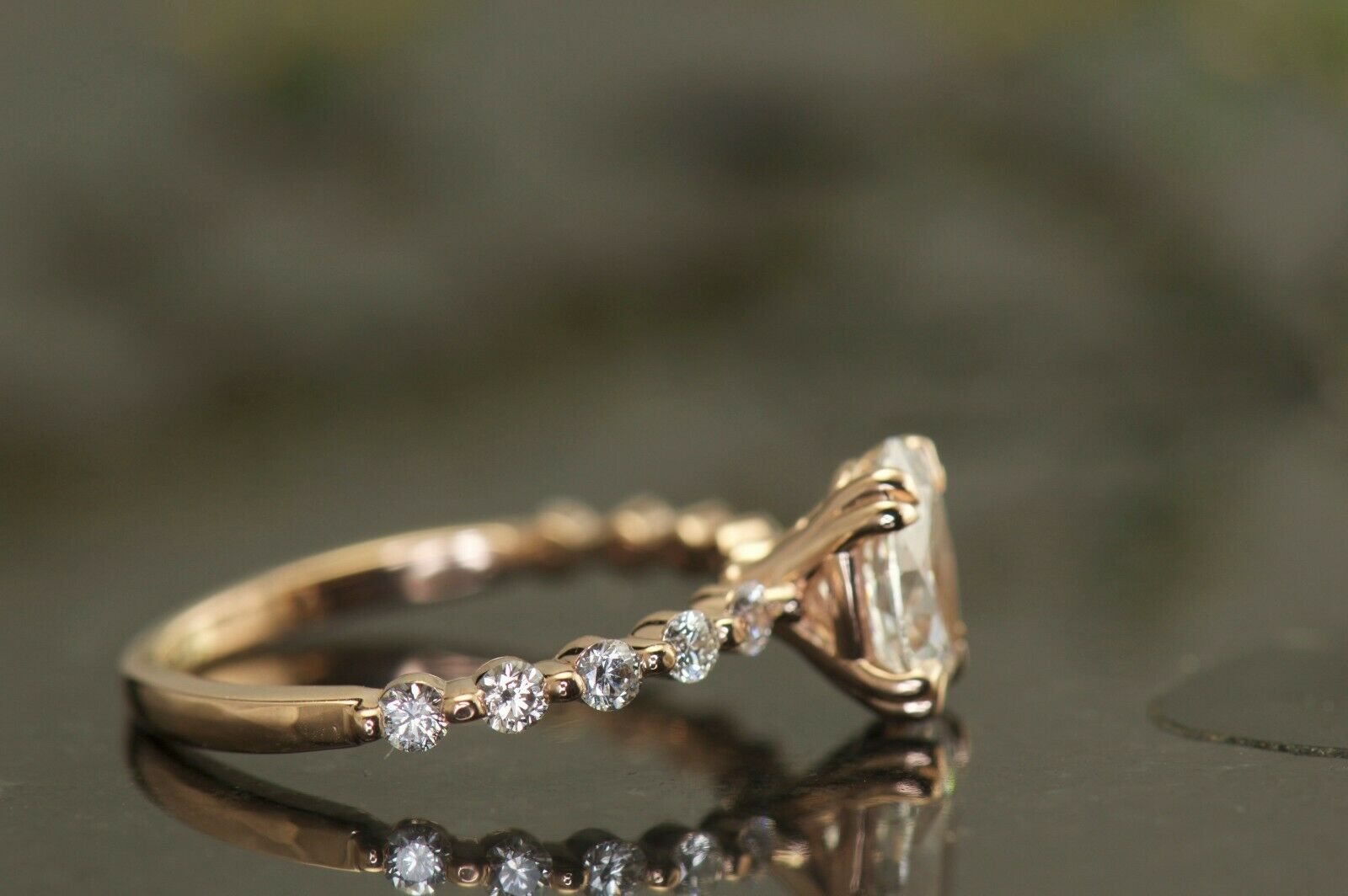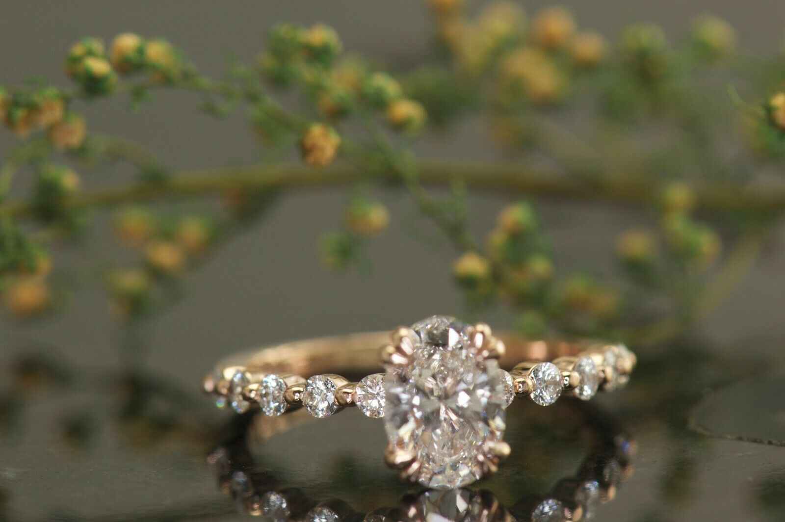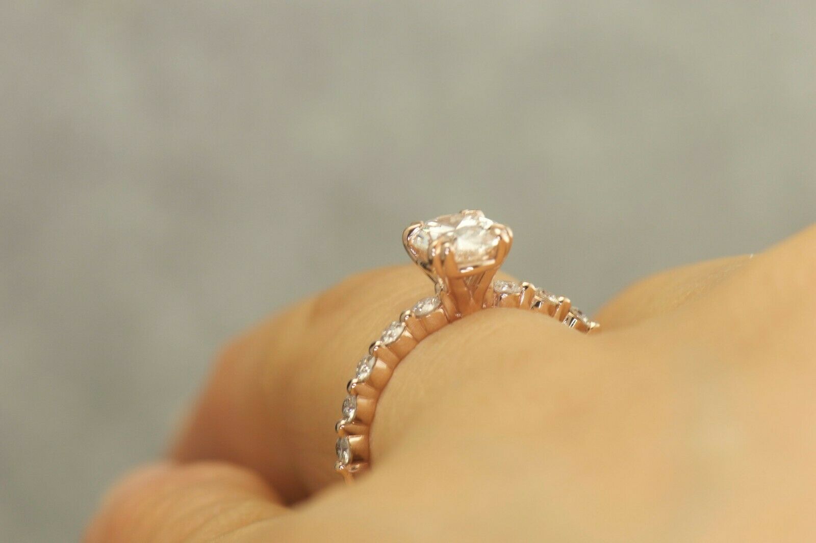1.3Ct Oval Cut DVVS1 Diamond Round Accents Engagement Ring 14K Rose Gold Finish