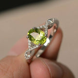 1.3ct Oval Cut Green Peridot Engagement Ring 14k White Gold Finish Unique Design